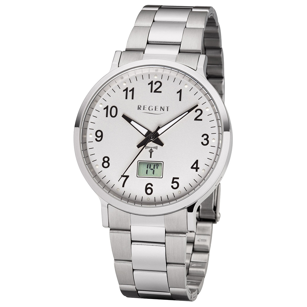 Regent Funkuhr Herren FR-248 Analog-Digital Armbanduhr Metall silber URFR248