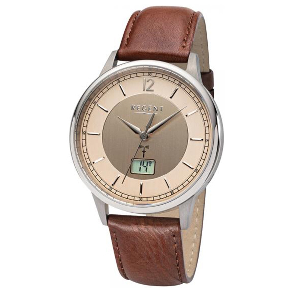 Regent Funkuhr Herren Uhr FR-249 Analog-Digital Armbanduhr Leder braun URFR249