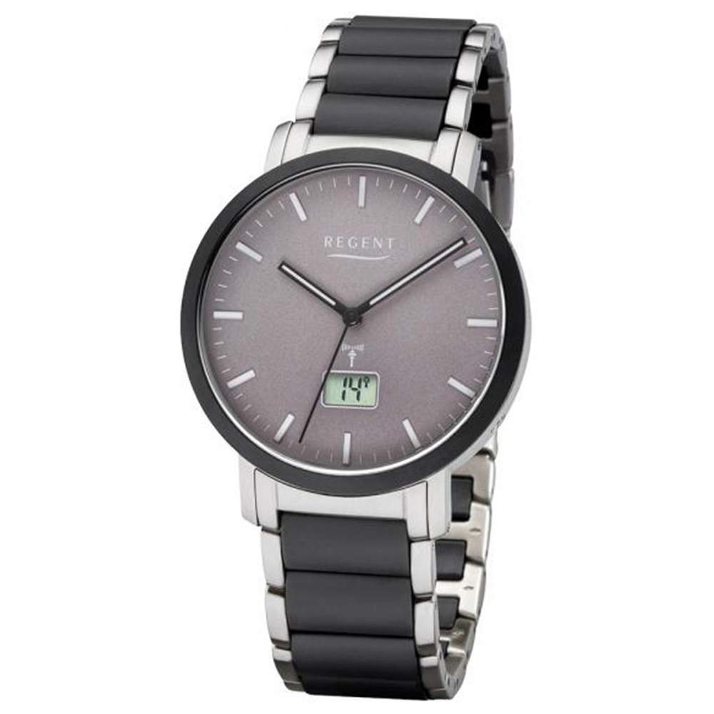 Regent Funkuhr Herren FR-253 Analog-Digital Armbanduhr Metall schwarz URFR253