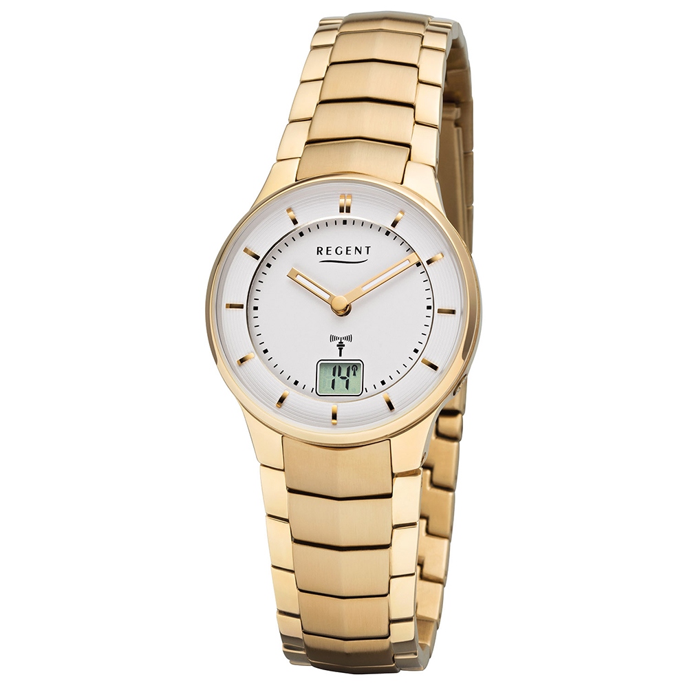 Regent Funkuhr Damen Uhr FR-263 Analog-Digital Armbanduhr Metall gold URFR263