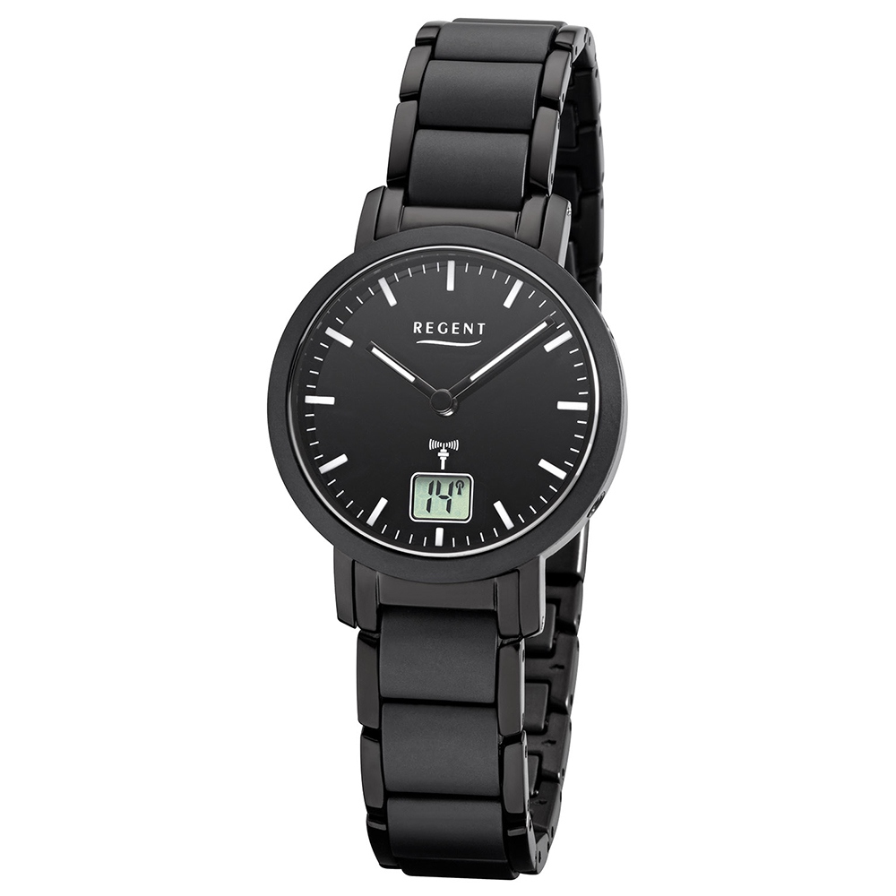 Regent Funkuhr Damen FR-266 Analog-Digital Armbanduhr Metall schwarz URFR266