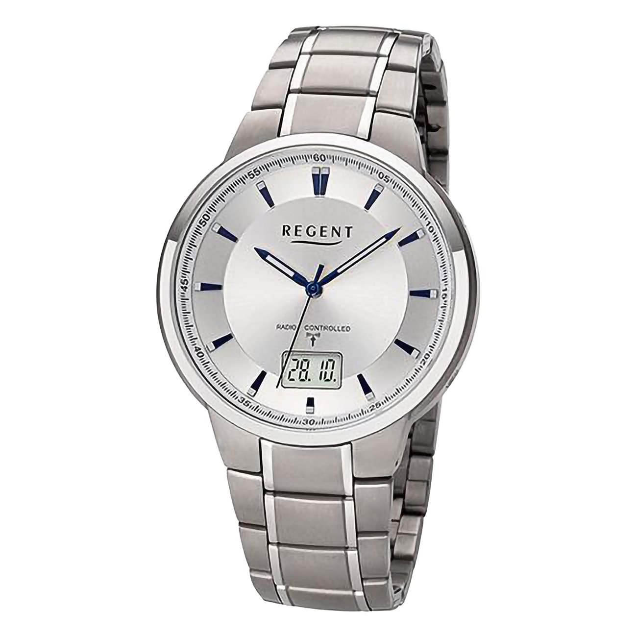 Regent Funkuhren Herren Uhr Armbanduhr Analog-Digital Metall silber URFR268