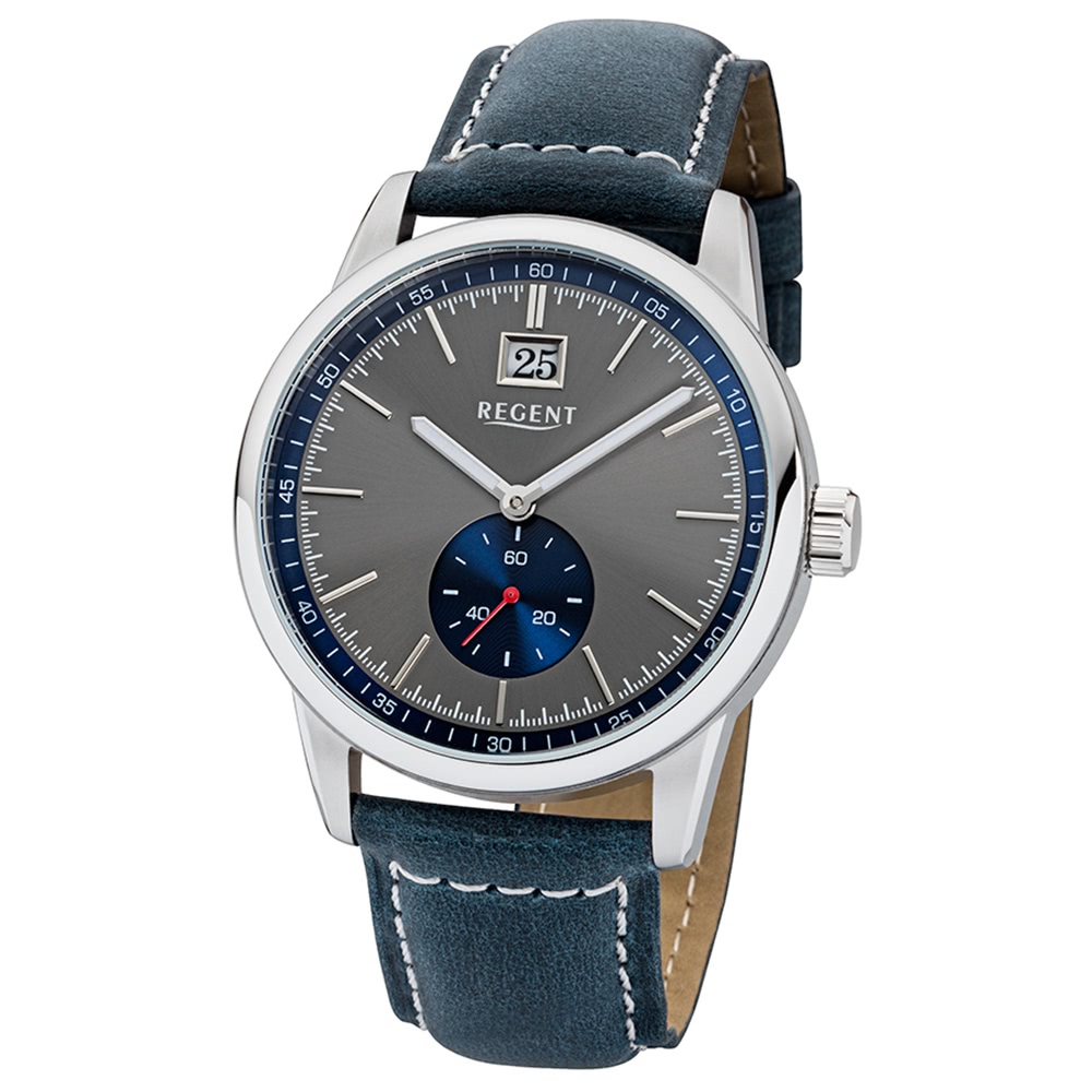 Regent Herrenuhr Quarzuhr mit Leder-Armband dunkelblau URUM1605