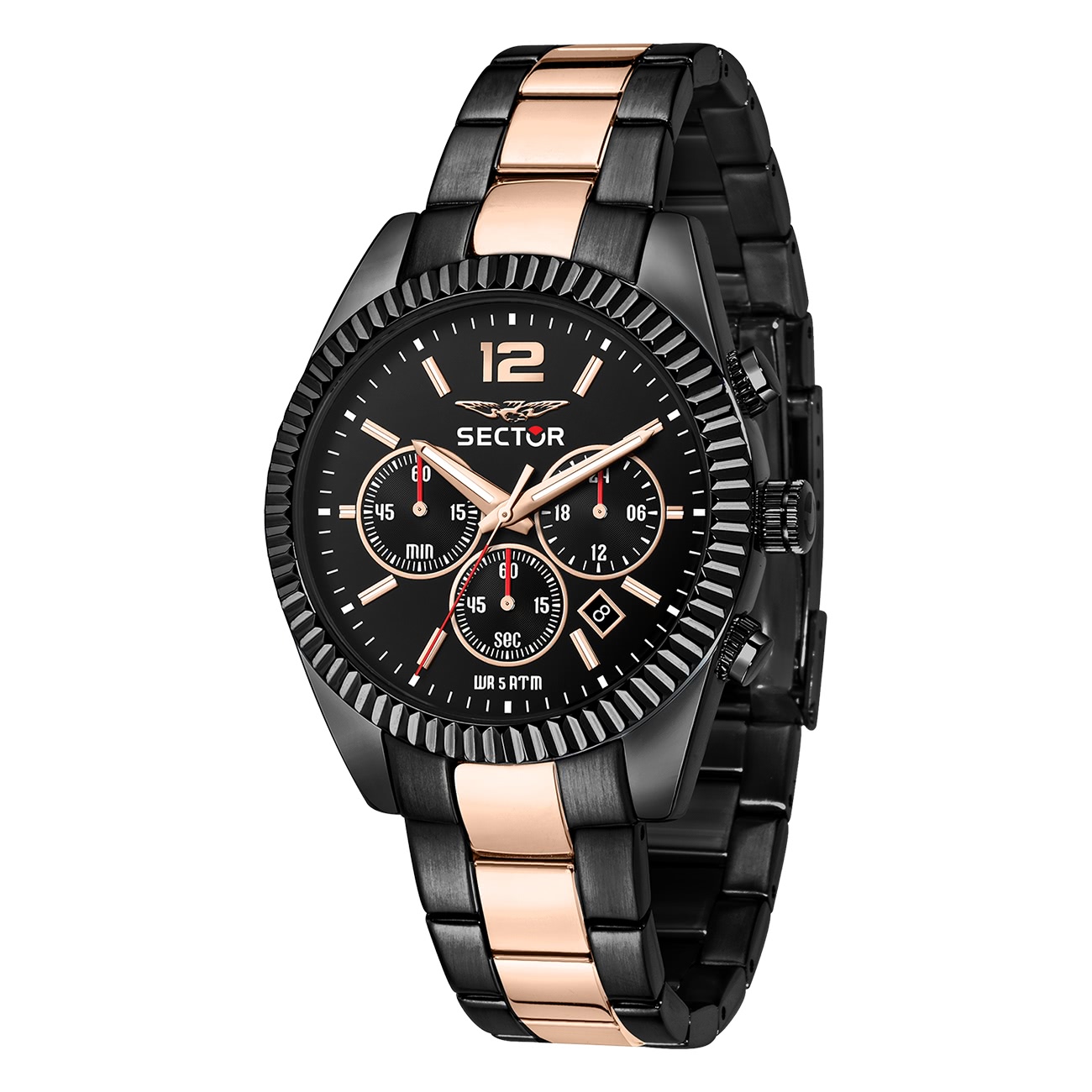 Sector Herren Chronograph Armbanduhr Edelstahl schwarz rosegold Fashion USE73640026
