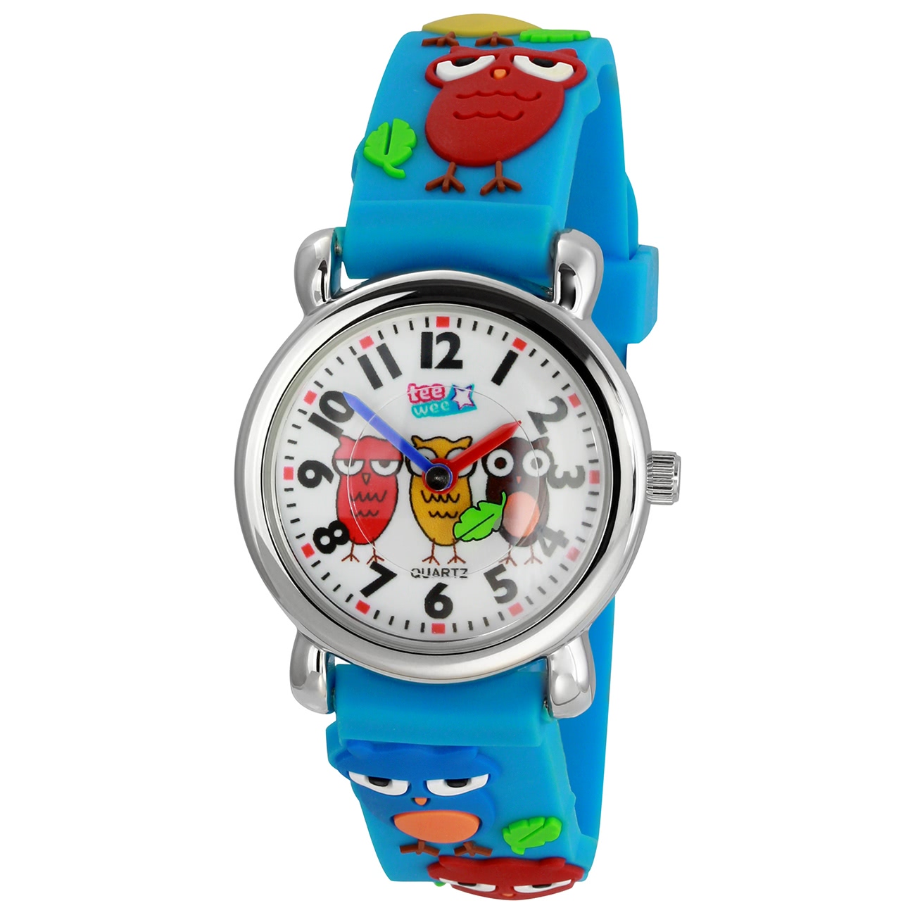 Tee-Wee Analog Kinder Quarz Uhr 27mm Eulen Kautschukarmband hellblau UW308H