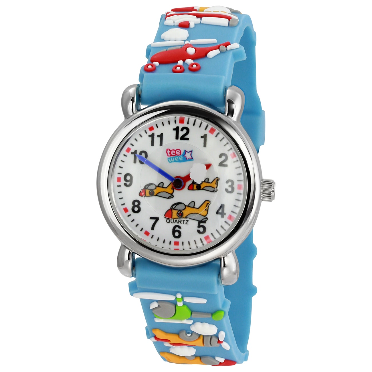 Tee-Wee Analog Kinder Quarz Uhr 27mm Flugzeuge Kautschukarmband türkis UW348T