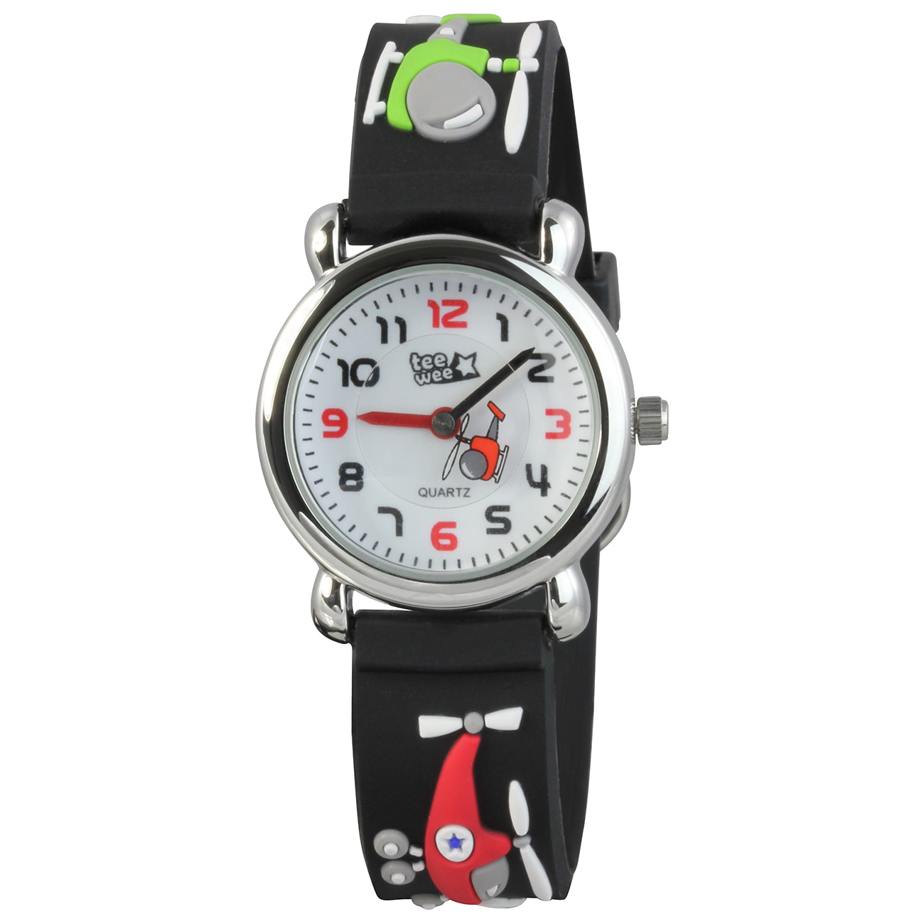 Tee-Wee Analog Kinder Uhr 27mm Helikopter Kautschukarmband schwarz UW887S
